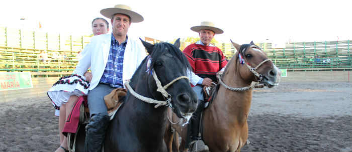 Vicuña y Ureta recibiendo los premios como campeones del rodeo
