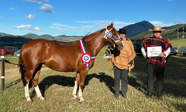 Campeona Yegua Mayor: Malal Mahuida Vieja Coyhaiquina. N° de Inscripción: 286345. Fecha de Nacimiento: 01-01-2019. Padre: Santa Toñita y Doña Josefa Estanco. Madre: Recreo de Arauco Gran Reserva. Criador y Expositor: Manuel y Juan Poblete Aguilera.