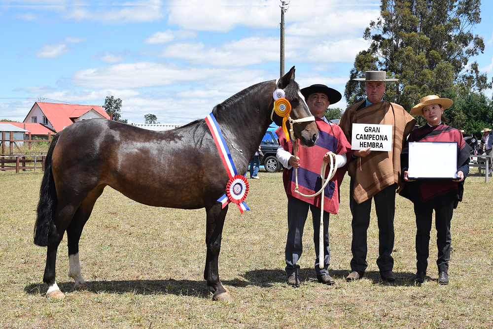 CAMPEONA YEGUA MAYORES: San Miguel ARCILLA, N° 299.659, del 03/11/2020, por Las Vertientes Entonao (Escorpión y Trama) y Mahuilque Chicuela (Don Pío y Chicuita). Criador y expositor : Juan Carlos Grob Angelbeck.