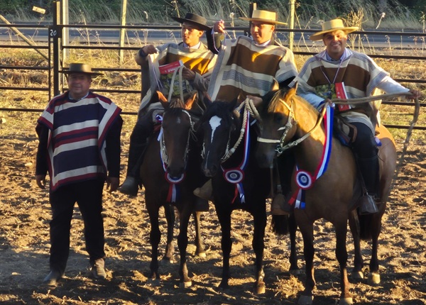3.- Tradición Criolla: Eduardo Valdebenito en Mañungo, Erwin León en Costina y Patricio Muñoz en Quita Pena con 2'21" y 6 animales correctamente apartados.